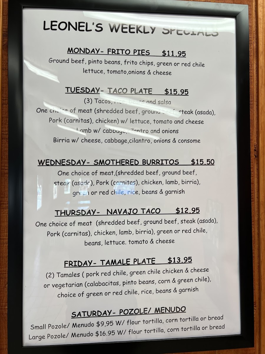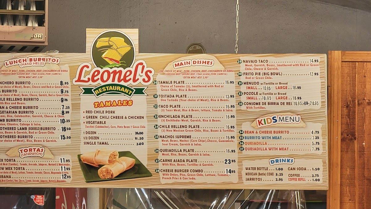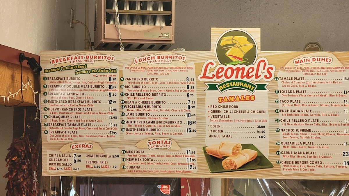 Leonel’s Restaurant offers a straightforward menu that invites you to enjoy classic Mexican dishes in a relaxed, no-frills setting. The focus is on comforting, familiar flavors that suit both a casual breakfast and a hearty lunch or dinner. Whether you’re starting the day with a hand-held double meat breakfast burrito or settling in for a plate of tamales or birra tacos, the food here reflects genuine home-style cooking with thoughtful attention to traditional New Mexican ingredients.